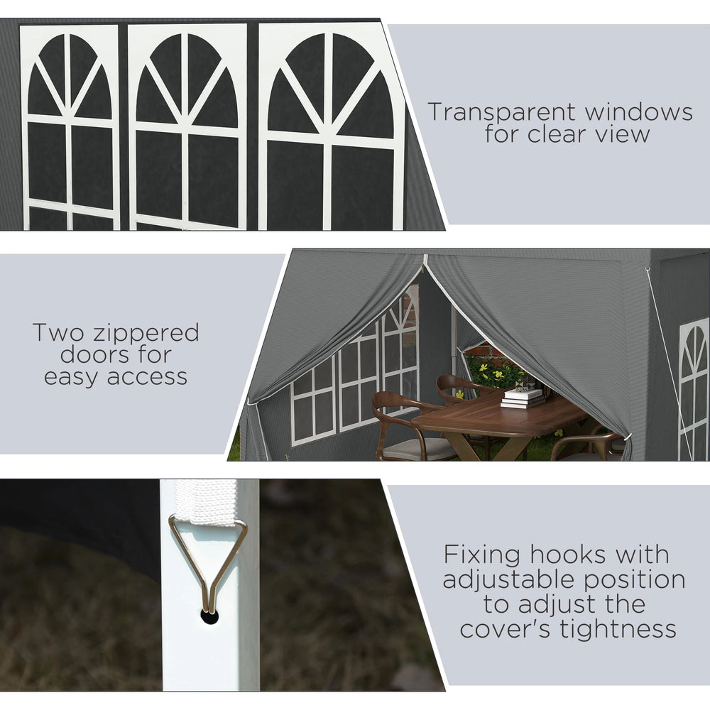 Outsunny 3 x 3 m Garden Pop Up Gazebo, Wedding Party Tent Marquee, Water Resistant Awning Canopy with Sidewalls, Windows, Carry Bag, Grey