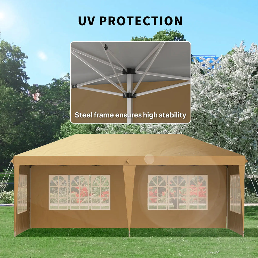 Outsunny 3 x 6m Pop-Up Gazebo, with Removable Walls - Khaki