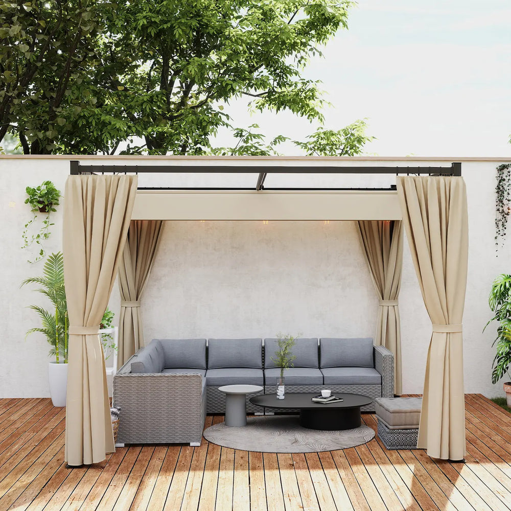 Outsunny 3 x 3(m) Retractable Pergola, Garden Gazebo Shelter with Curtains, for Grill, Patio, Deck, Beige