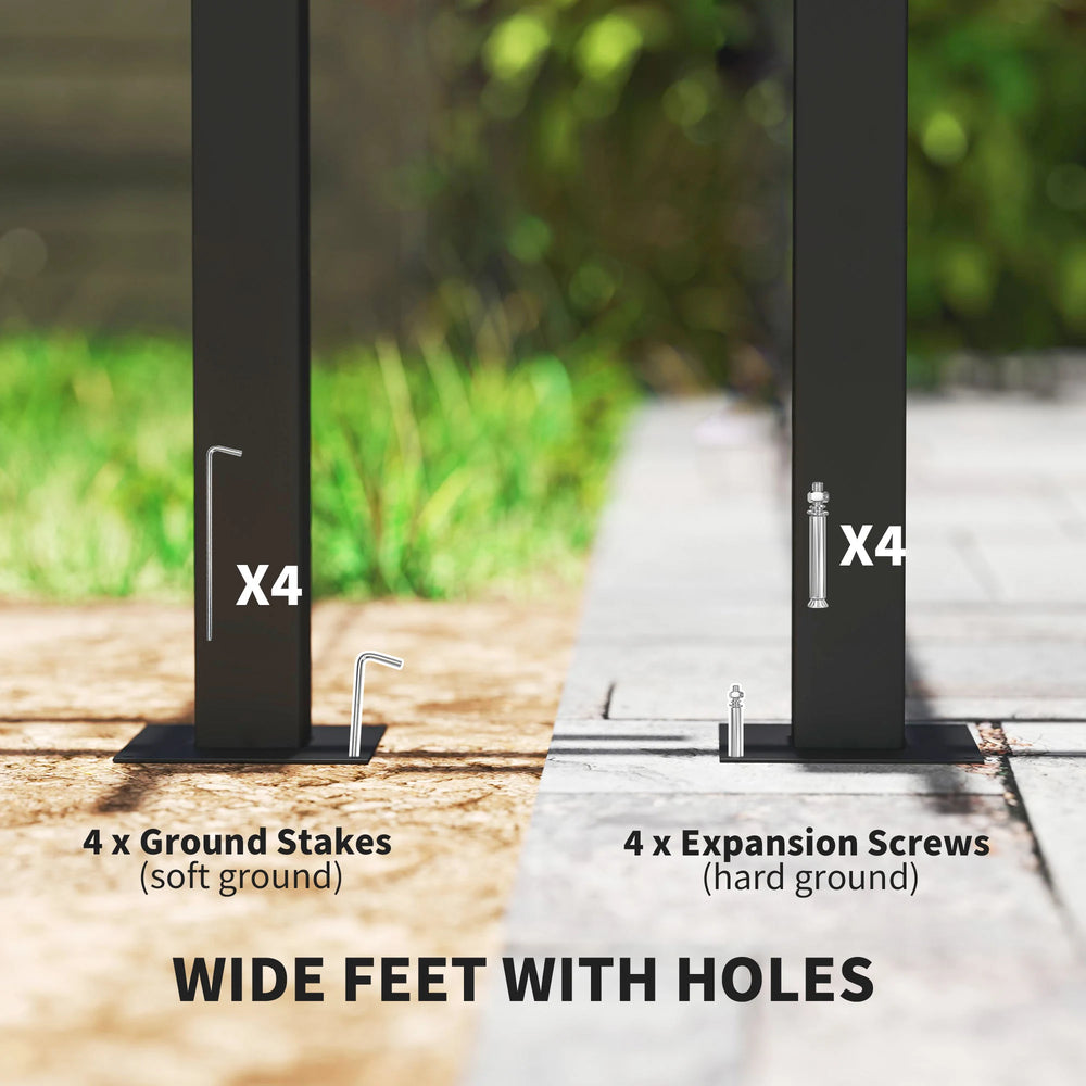 - Mounting accessories included: Pergola kit formed of four ground stakes, eight wall expansion screws and four ground expansion screws.