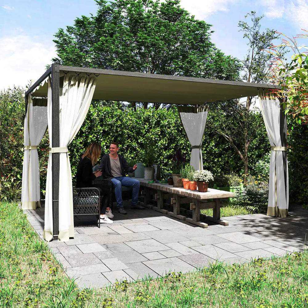 Outsunny 3 x 4m Aluminium Frame Pergola, with Retractable Roof - Khaki