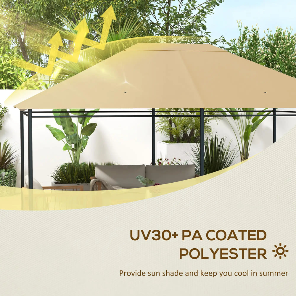 Outsunny 3 x 4m Gazebo Canopy Replacement Cover, Gazebo Roof Replacement (TOP COVER ONLY), Khaki