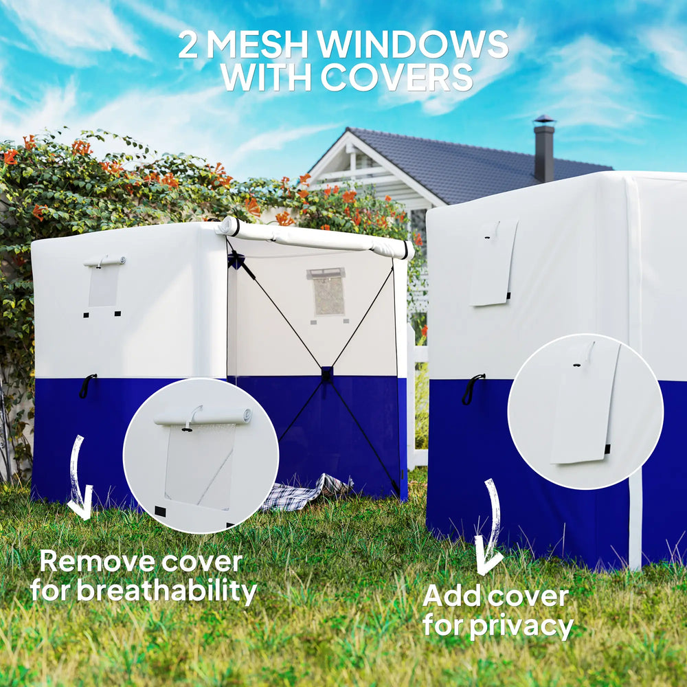 A handy garden shelter for your outdoor gatherings, assembled oh so quickly - bring this Outsunny pop up gazebo with sides to your garden this season and beyond. Our garden tent comes with two mesh windows to bring light and fresh air inside. Outer covers offer privacy whenever. The fibreglass pole frame means a strong core. Bag included to store and carry easily. Outdoor entertaining made easy.