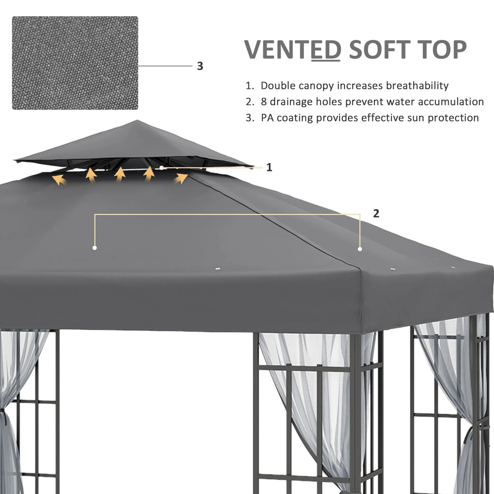 Outsunny 3 x 3(m) Patio Gazebo Canopy Garden Pavilion Tent Shelter with 2 Tier Roof and Mosquito Netting, Steel Frame, Grey