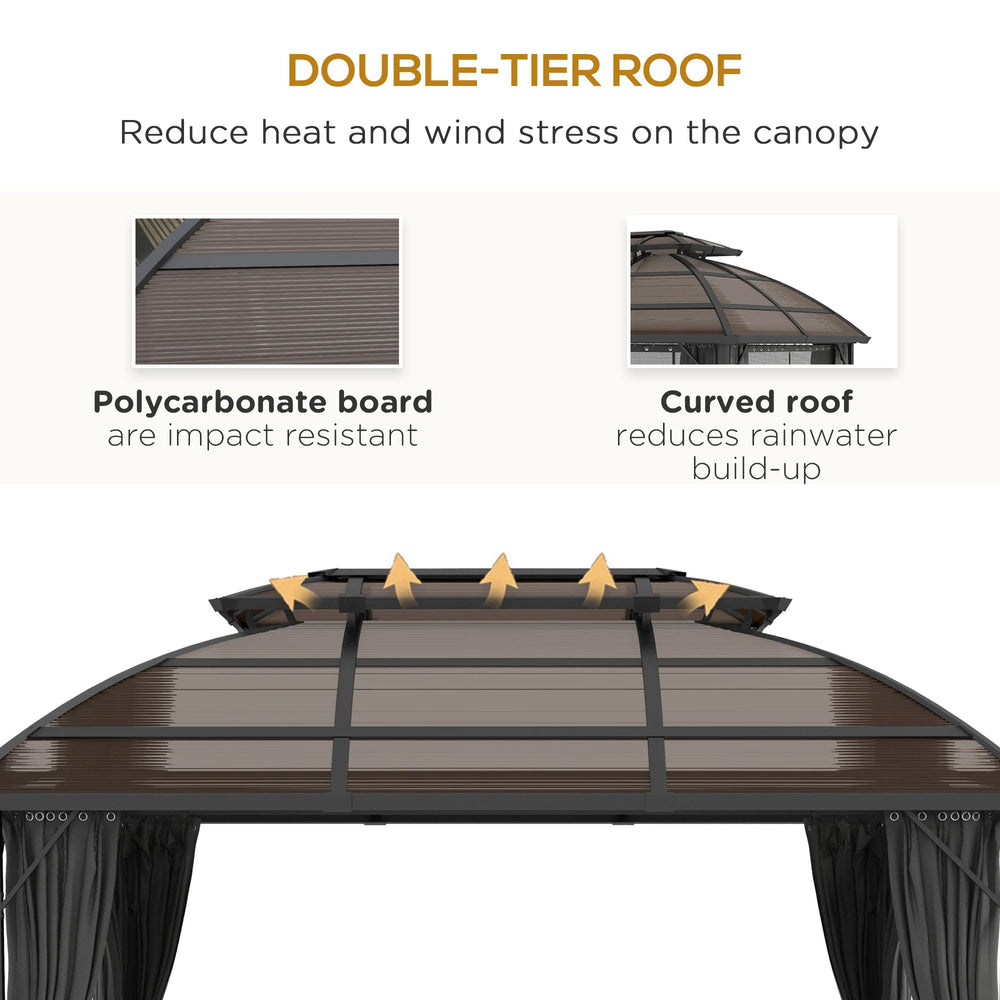 Outsunny 4 x 3m Aluminium Frame Hard Gazebo, with Accessories - Brown