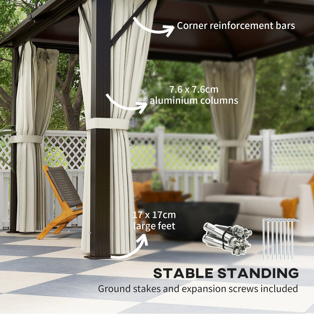 Outsunny 3 x 3(m) Hardtop Gazebo Canopy with UPF30+ Double Polycarbonate Roof, Aluminium Frame Garden Gazebo Permanent Pavilion with Mosquito Netting and Curtains for Patio, Deck, Beige is backordered and will ship as soon as it is back in stock.