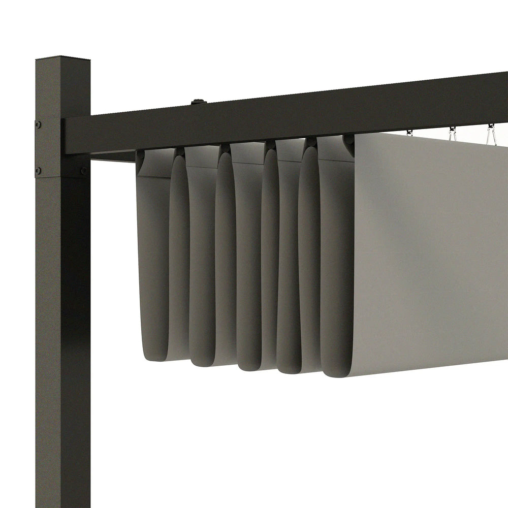 Outsunny 3 x 3(m) Metal Pergola with Retractable Roof and Magnetic Fixture, Outdoor Gazebo Garden Pergola Kit Sun Shade Canopy, UPF30+, 80mm Metal Column, Grey is backordered and will ship as soon as it is back in stock.
