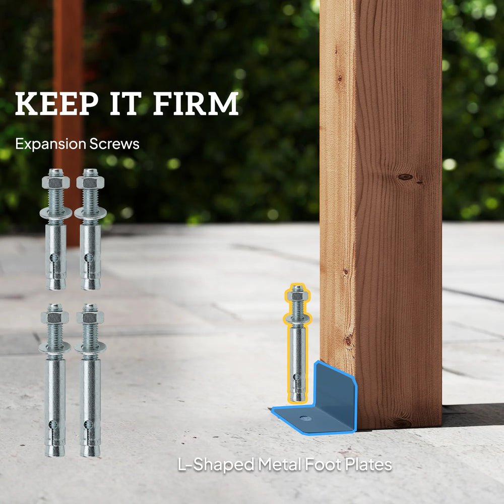 - Added stability: Equipped with four L-shaped metal foot plates and expansion screws for secure fixing to hard surfaces, this wooden pergola offers reliable stability and stays firmly in place even in up to level 7 winds for outdoor gatherings
