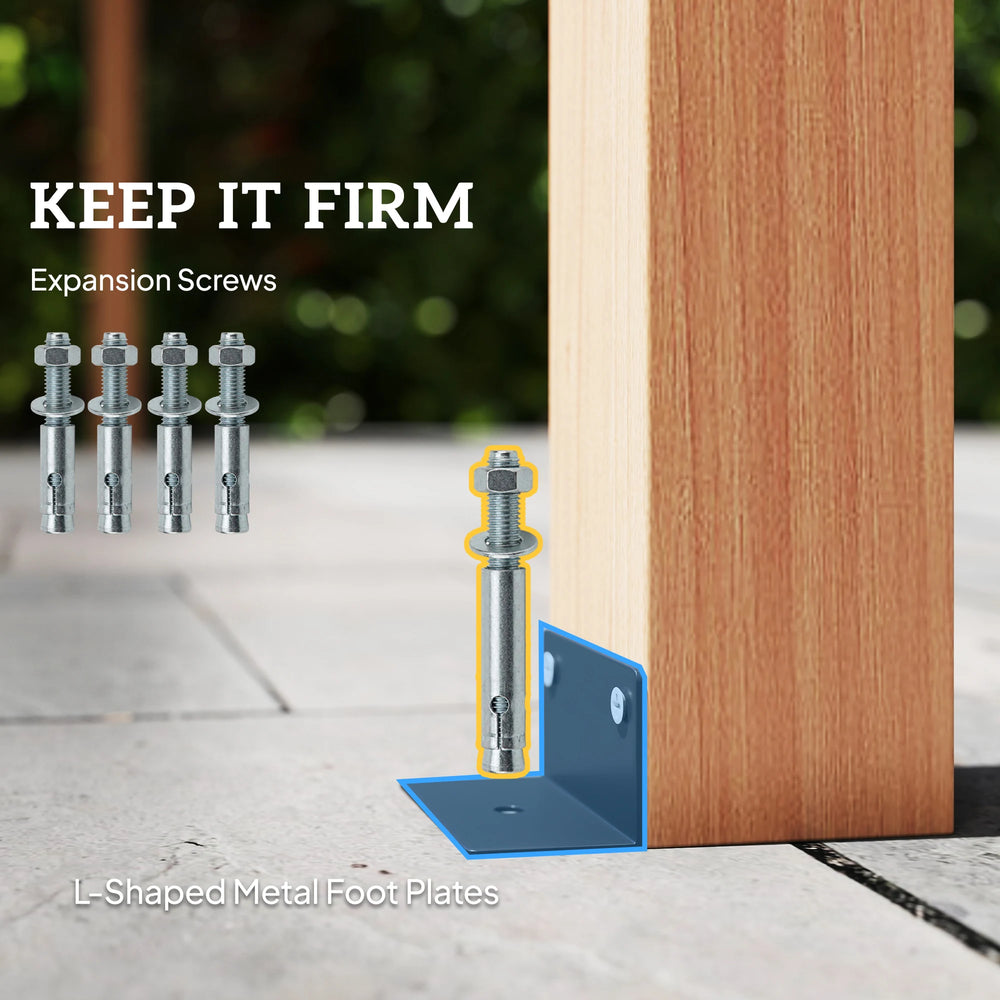 - Added stability: Equipped with four L-shaped metal foot plates and expansion screws for secure fixing to hard surfaces, this wooden pergola offers reliable stability and stays firmly in place even in up to level 7 winds for outdoor gatherings