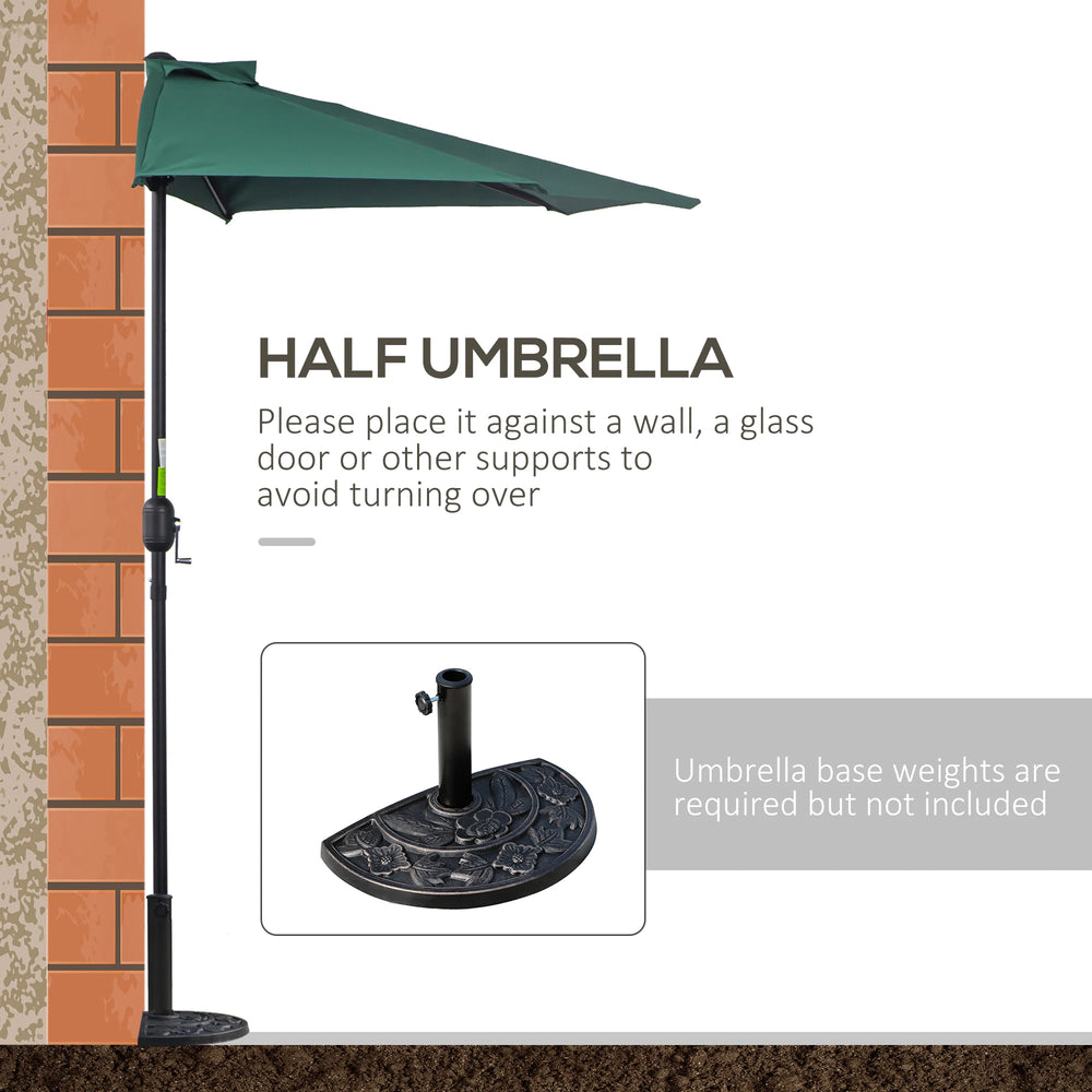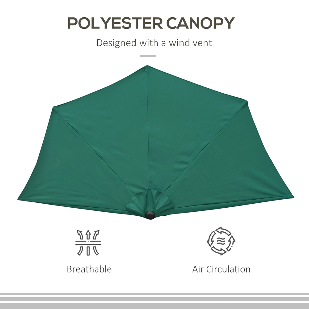 Outsunny 2.7m Garden Half Parasol, Outdoor Balcony Umbrella with 5 Steel Ribs, Patio Sun Shade, Green