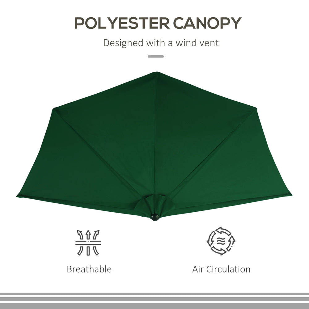 Outsunny 3(m) Half Parasol, Semi Round Umbrella with Metal Frame, Crank Handle for Balcony, Garden, Green