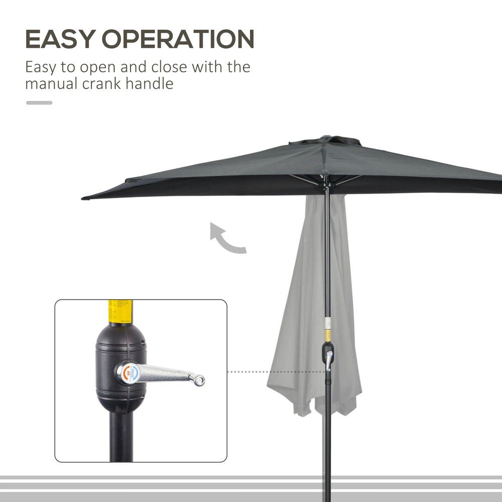 Outsunny 3(m) Half Parasol, Semi Round Umbrella with Metal Frame, Crank Handle for Balcony, Garden, Black