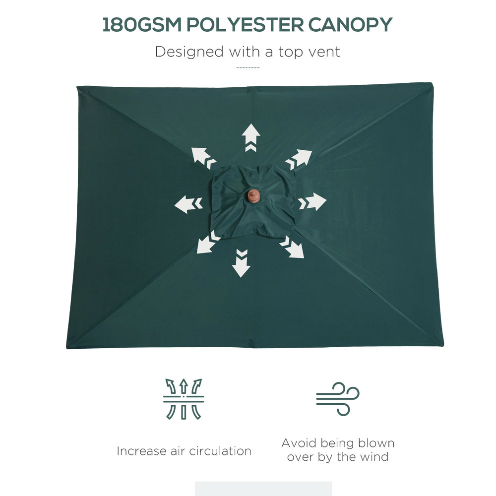 Outsunny 2m x 1.5m Garden Parasol Umbrella with Tilting Sunshade Canopy, Outdoor Market Table Umbrella with Wood and Bamboo Frame, Green
