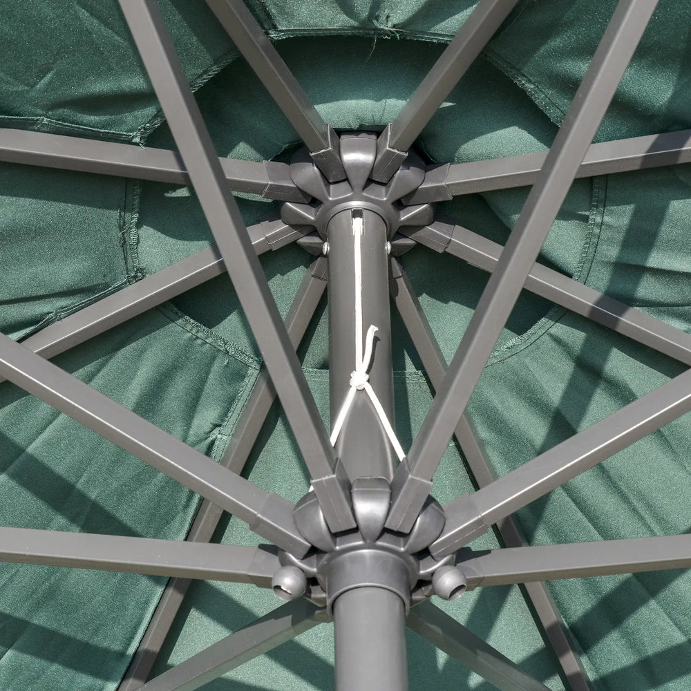 Outsunny 2.7m Patio Garden Umbrella Outdoor Parasol with Tilt Crank and 24 LEDs Lights (Green)