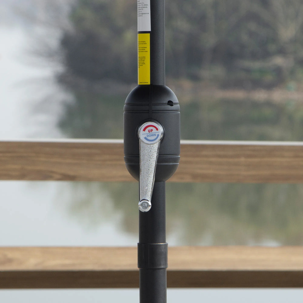 - Crank handle: Open and close the large garden umbrella easily with the easy-turn movement. Located on the side of the pole.