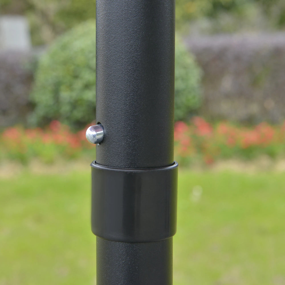 - Crank handle: Open and close the large garden umbrella easily with the easy-turn movement. Located on the side of the pole.