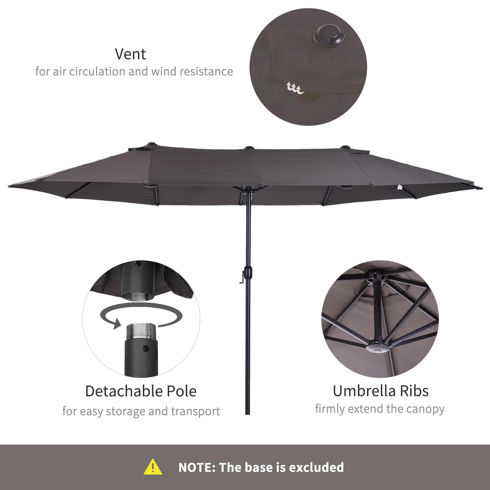 Outsunny 4.6m Garden Parasol Double-Sided Sun Umbrella Patio Market Shelter Canopy Shade Outdoor Grey