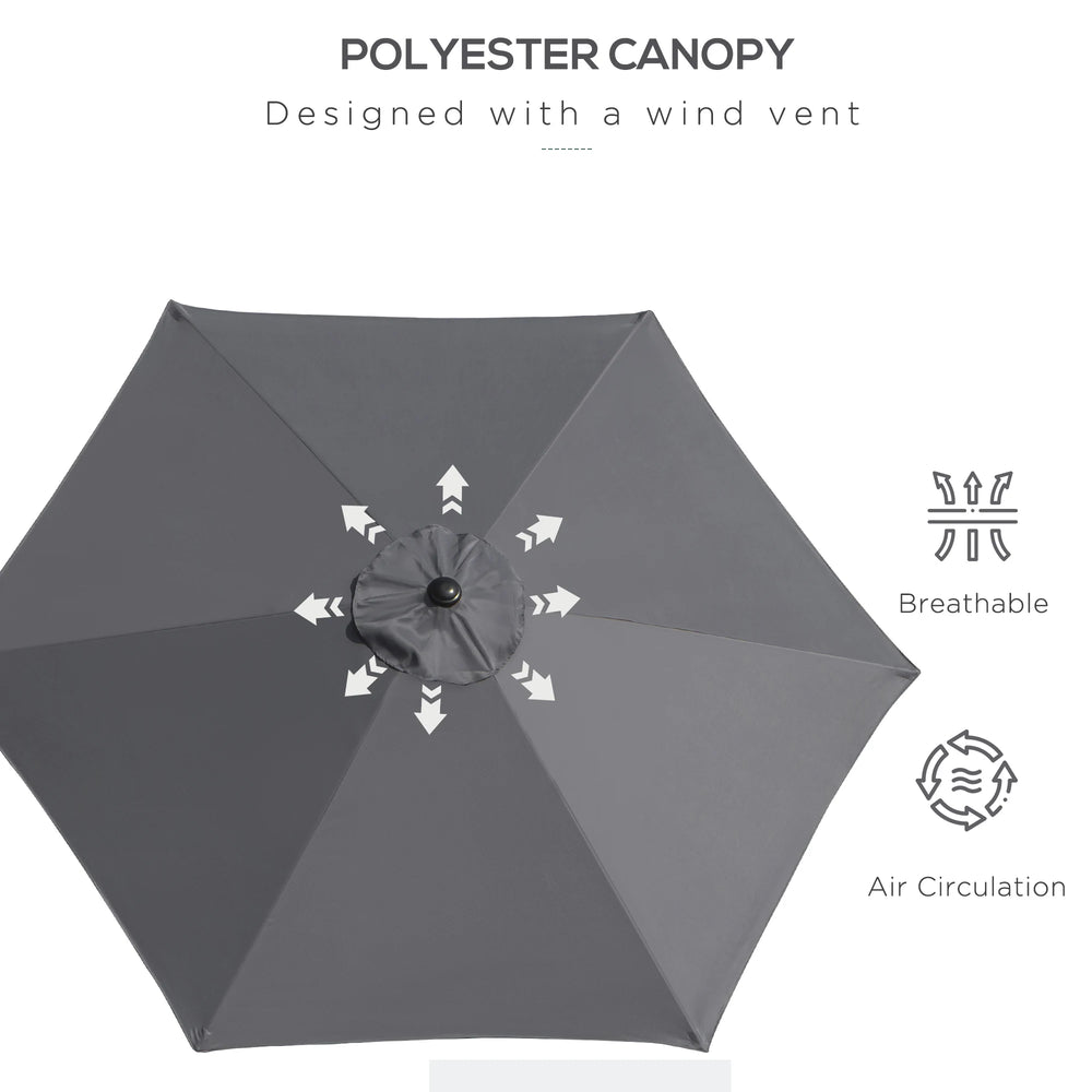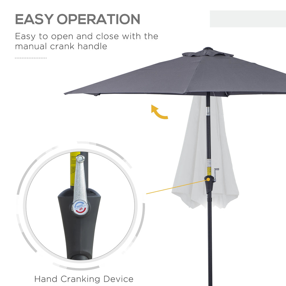 Outsunny 2.6M Garden Parasol Umbrella with Tilt and Crank, Outdoor Sun Parasol Sunshade Shelter with Aluminium Frame, Grey