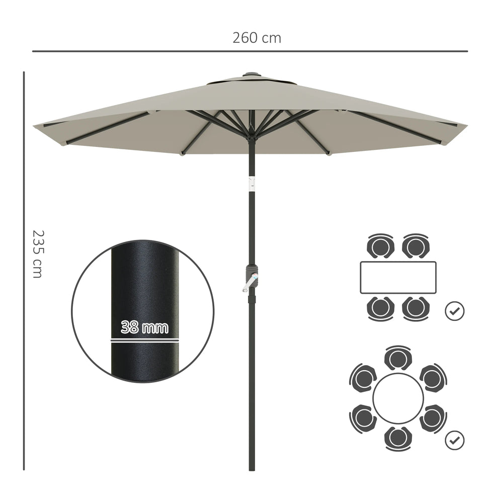 Outsunny 2.6M Garden Parasol Umbrella with Tilt and Crank, Outdoor Sun Parasol Sunshade Shelter with Aluminium Frame, Light Grey