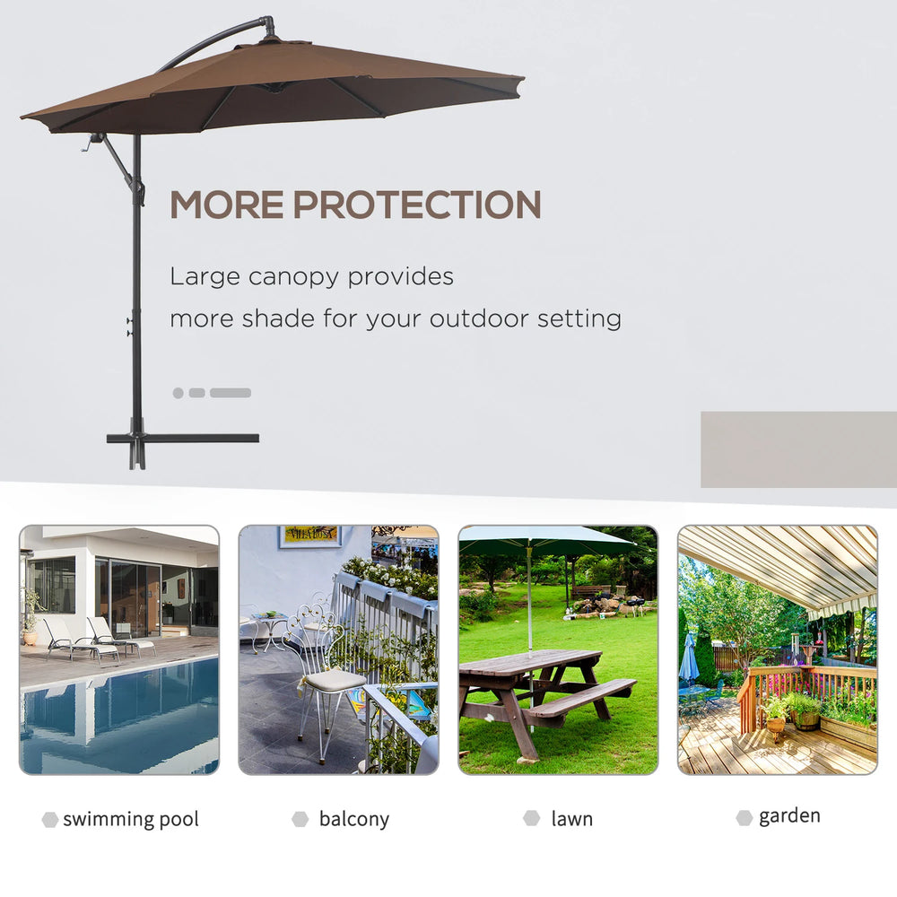 Outsunny 2.45m Overhanging Cantilever Parasol, Heavy Duty Waterproof Garden Umbrella with Cross Base, Brown