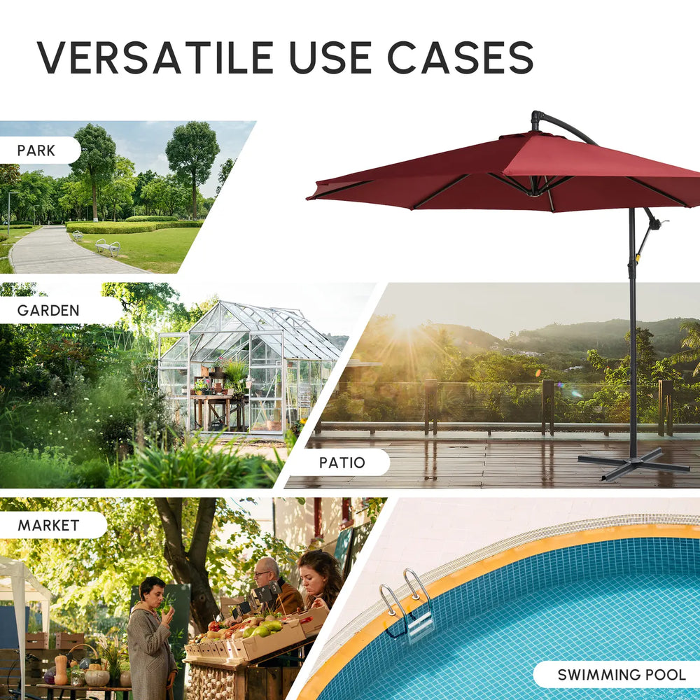 Outsunny Cantilever Umbrella Parasol Hanging Banana Steel Dark Green 3M Patio Wine Red