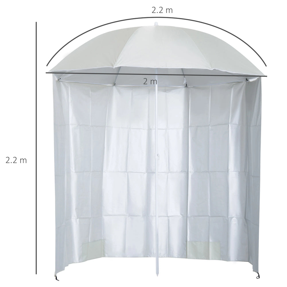 Outsunny 88" Arc 2.2M Fishing Umbrella Beach Parasol with Sides Brolly Shelter Canopy Shade with FREE Carry Bag Off-White