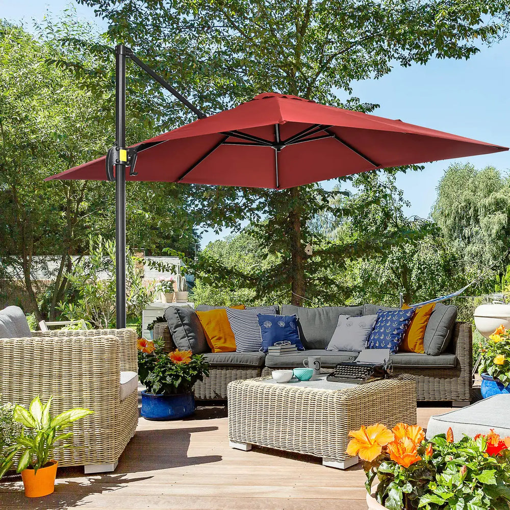 - Aluminium pole: A strong core for this cantilever patio umbrella. Eight steel ribs connecting to the canopy for extra support.