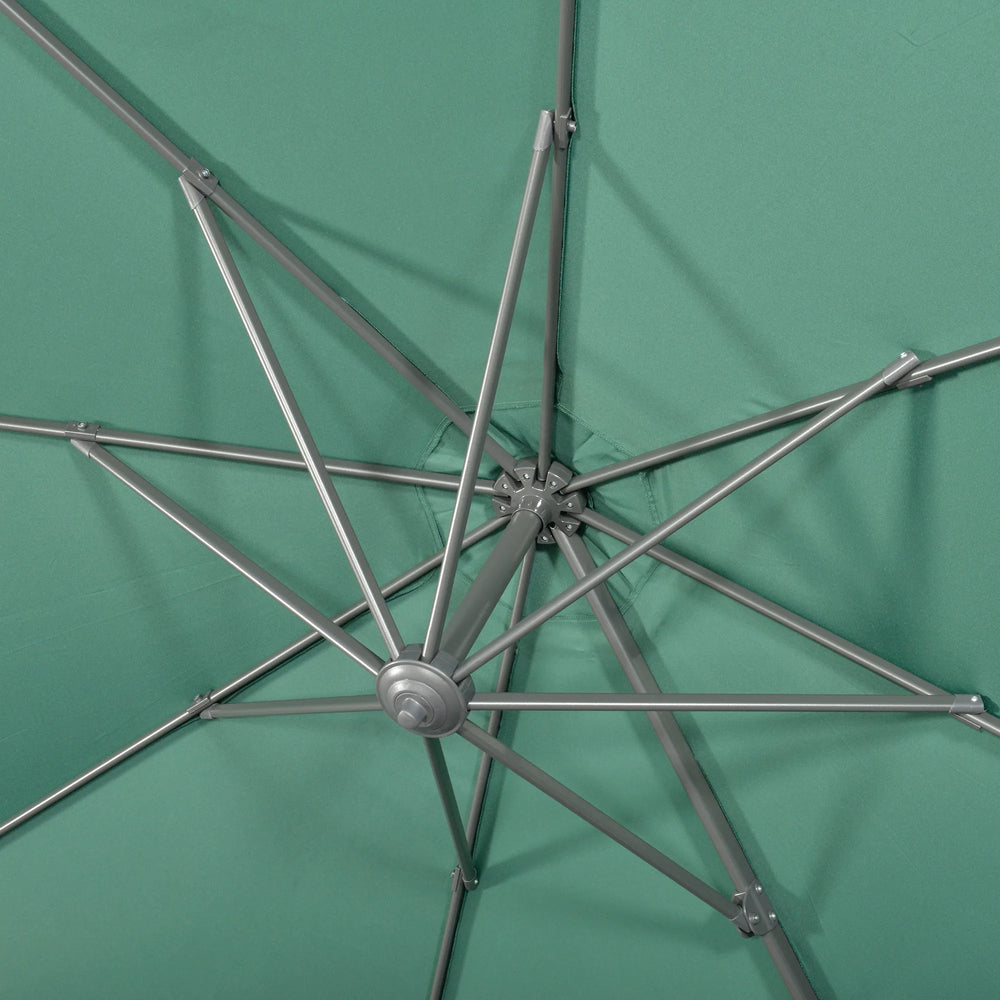 Outsunny 3 x 3(m) Cantilever Parasol with Cross Base, Garden Umbrella with 360 Rotation, Crank Handle and Tilt for Outdoor, Patio, Green