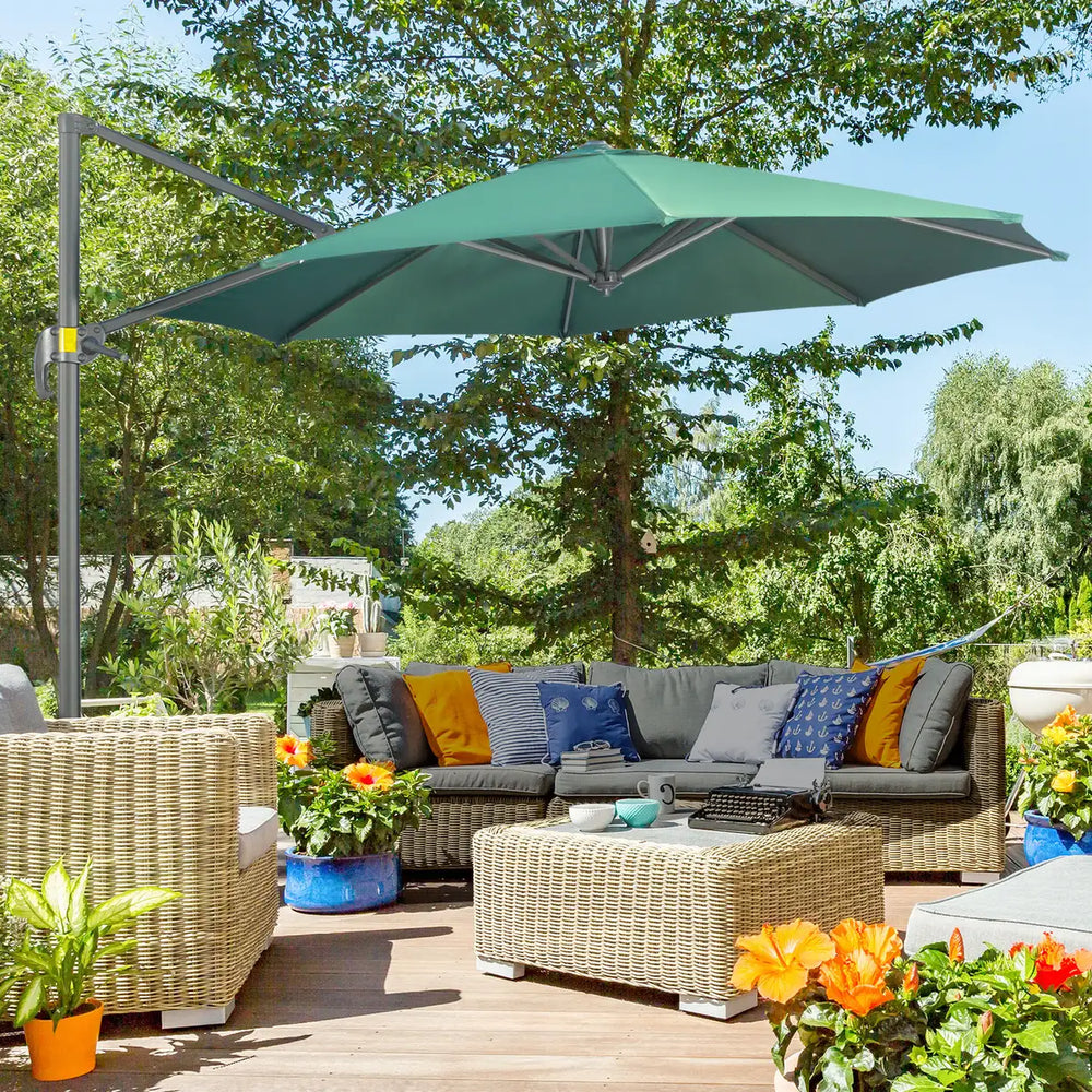 Outsunny 3 x 3(m) Cantilever Parasol with Cross Base, Garden Umbrella with 360 Rotation, Crank Handle and Tilt for Outdoor, Patio, Green is backordered and will ship as soon as it is back in stock.