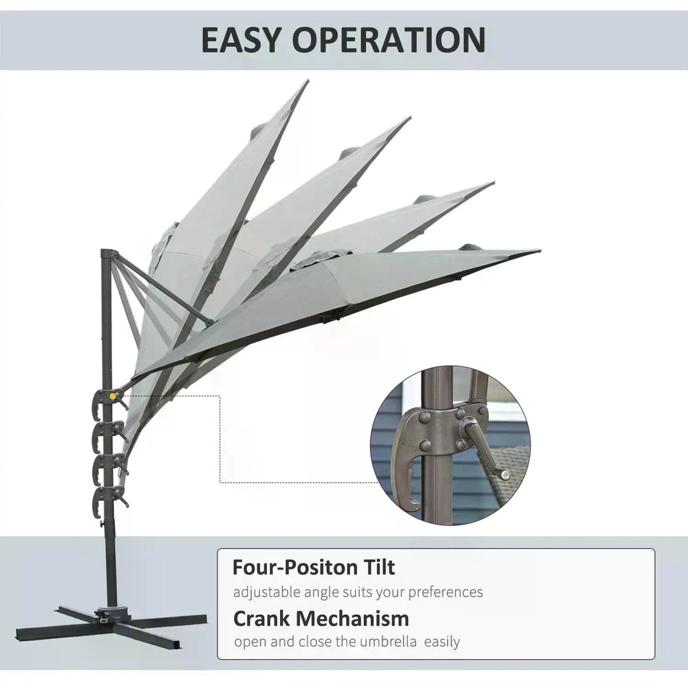 Outsunny 3(m) Offset Parasol Cantilever Hanging Umbrella 360 Rotation w/ Base Dark Grey