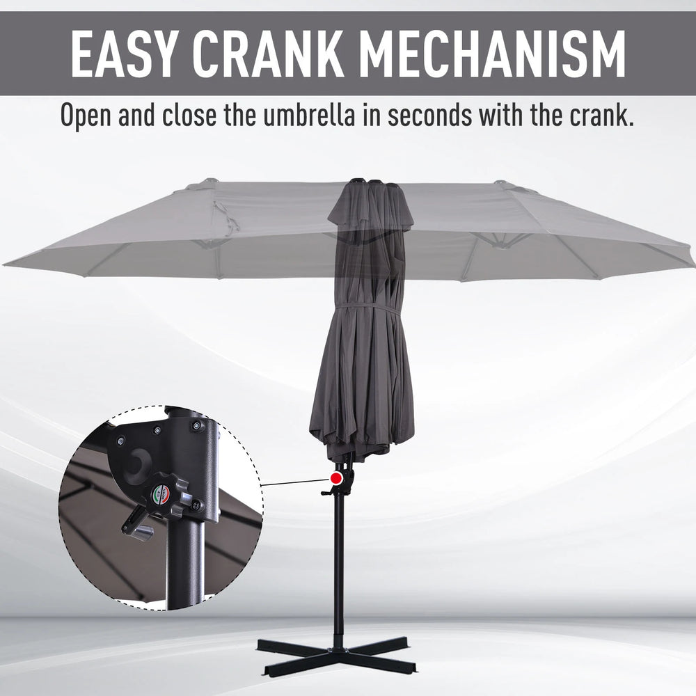 Outsunny Double Canopy Offset Parasol Umbrella Garden Shade w/ Steel Pole 12 Ribs Grey