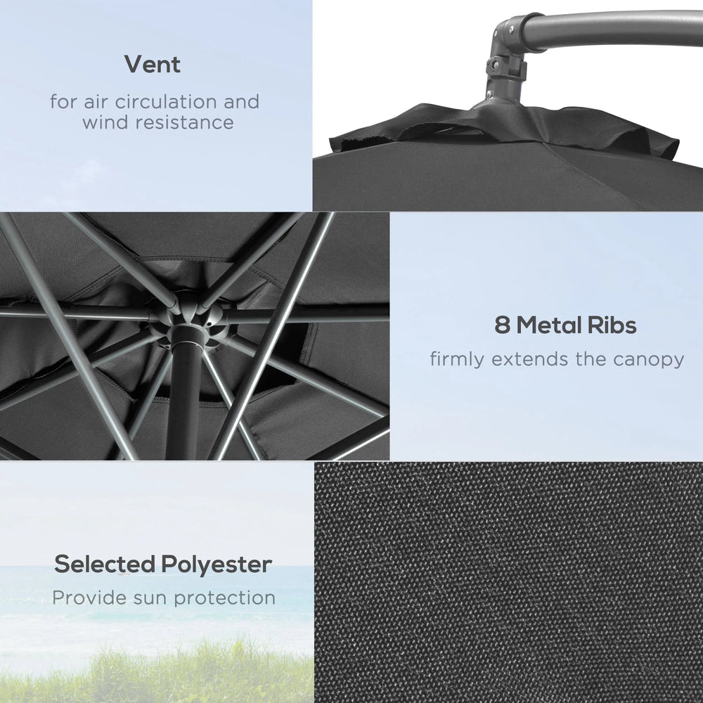 - Offset design: Cantilever umbrella comes in an overhanging design - this garden parasol doesn't get in your way as you relax outdoors.