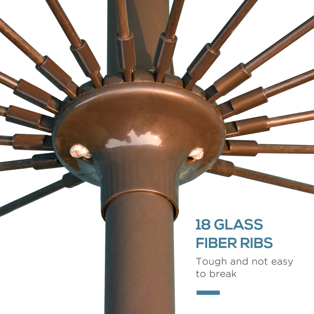 Keep yourself protected with the large garden umbrella from Outsunny. With a large polyester canopy, the balcony parasol offers plenty of shade underneath. The outdoor parasol is connected to a tough metal frame with 18 fibreglass ribs. Sunshades for garden with crank handle and tilt, which opens and closes the canopy smoothly and easily. Please note, that a base is not included.