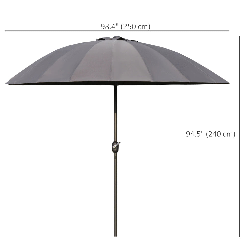 Outsunny 2.5m Shanghai Garden Parasol Umbrella with Crank & Tilt, Adjustable Outdoor Sun Shade, Grey