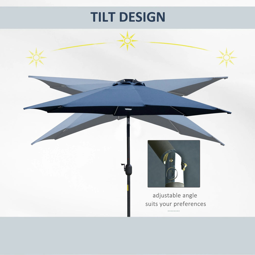 Outsunny 2.7m Garden Parasol Sun Umbrella w/ LED Solar Light Angled Canopy Blue