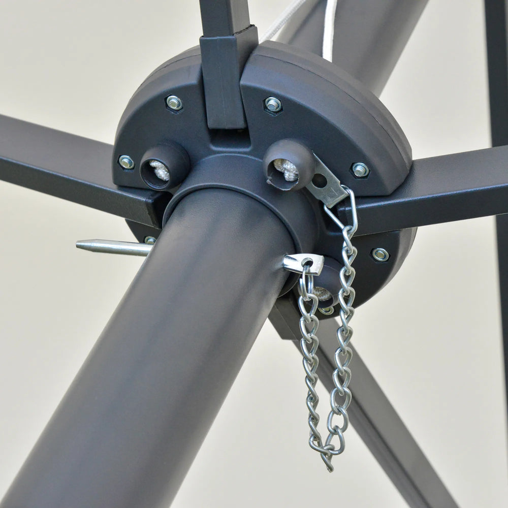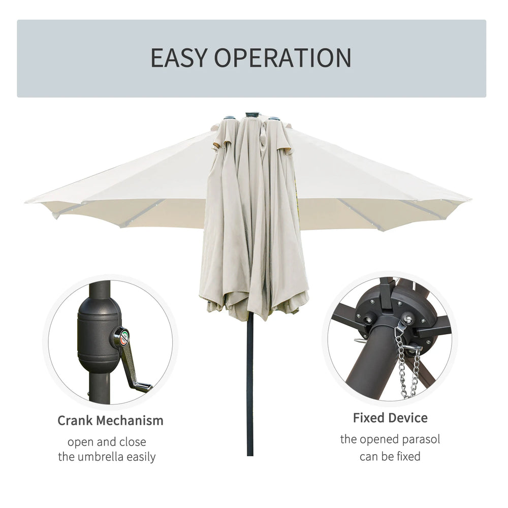 - EASY TO USE: Comes with the easy-to-turn crank system located on the side of the led parasol pole for easy opening and closing. 12 metal ribs connecting pole and garden shelter for added support