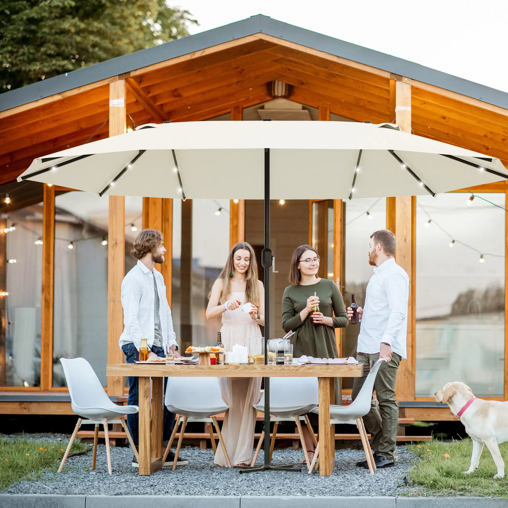- DOUBLE CANOPY: This double parasol' large size creates plenty of shade for keeping you protected from direct sun. Top vents of this large patio umbrella allow wind to flow in and out, helps prevent the canopy from turning inside out.