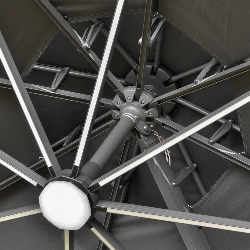 Outsunny 3m Cantilever Parasol w/ Solar Lights Power Bank Base 360 Spin Dark Grey
