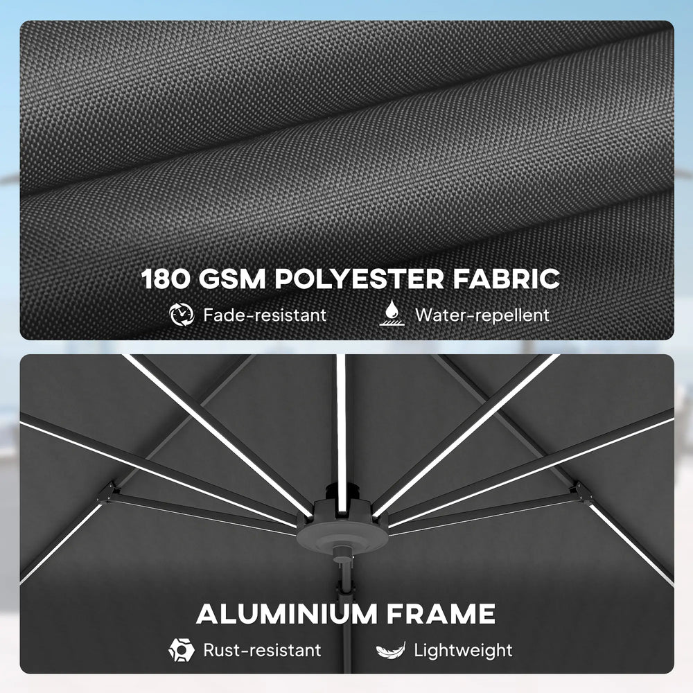 Outsunny 3(m) Adjustable Cantilever Parasol with Base, Solar LED Lights, Dark Grey