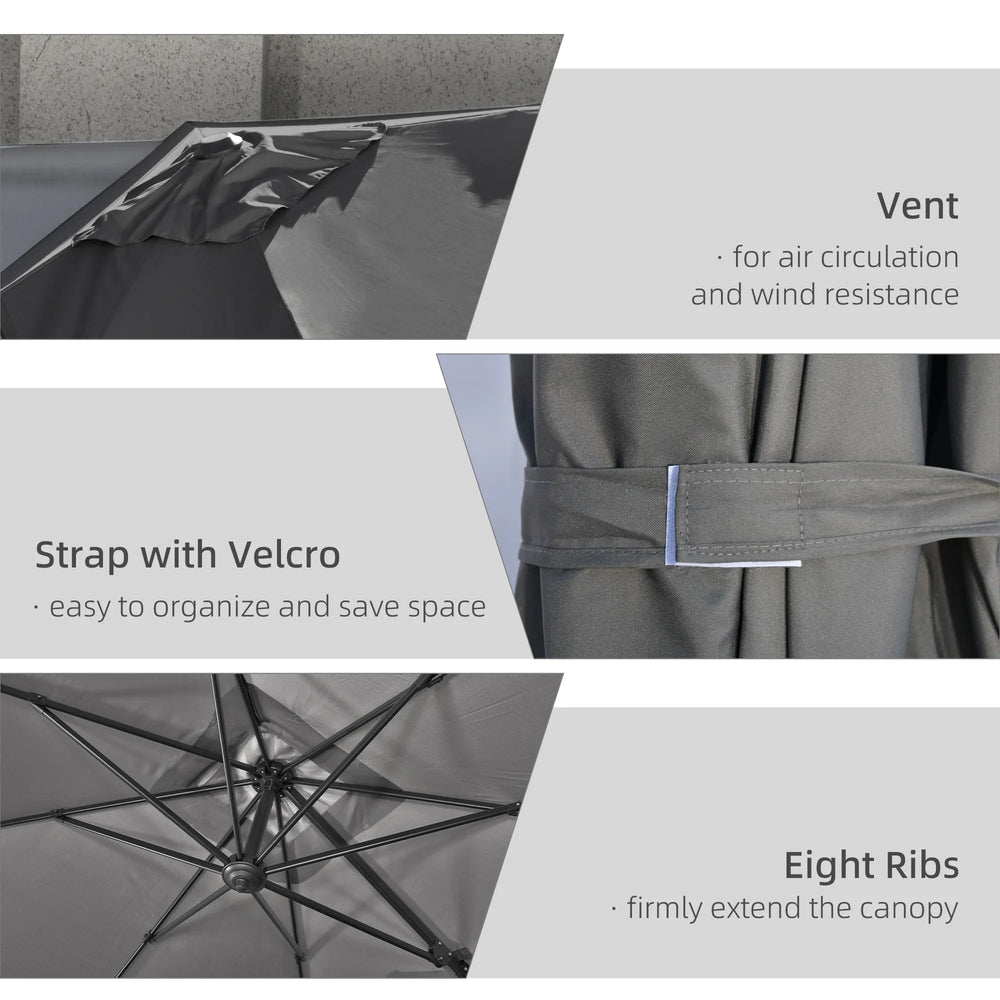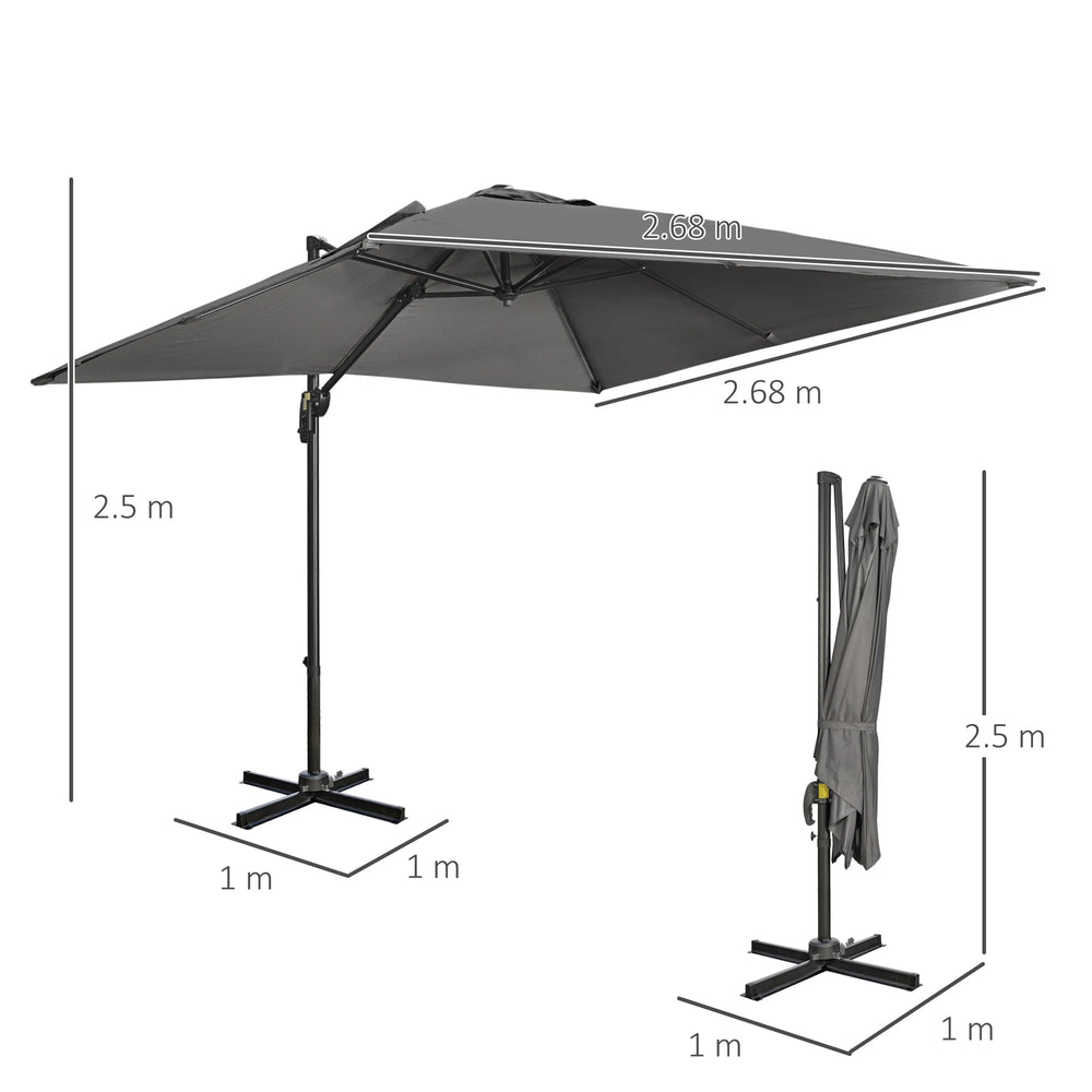 Outsunny 2.7 x 2.7 m Cantilever Parasol, Square Overhanging Umbrella with Cross Base, Crank Handle, Tilt, 360 Rotation and Aluminium Frame, Dark Grey