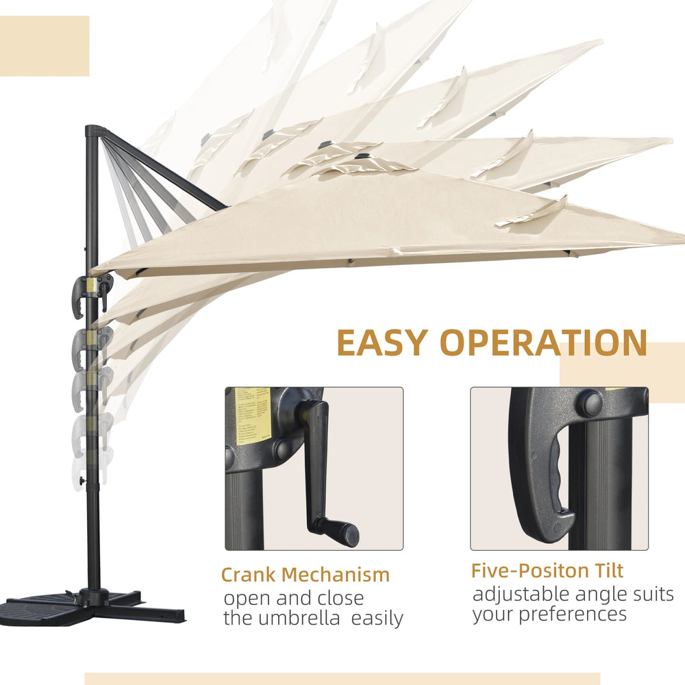 Outsunny 2.7 x 2.7 m Cantilever Parasol, Square Overhanging Umbrella with Cross Base, Crank Handle, Tilt, 360 Rotation and Aluminium Frame, Cream White