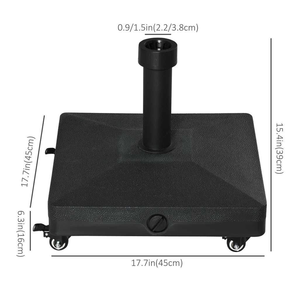 - 22-38mm pole size: Parasol base on wheels is suitable for holding most garden parasols. Measure pole before purchase. Suitable Outsunny parent skus: X-840-070 and X-840-125.