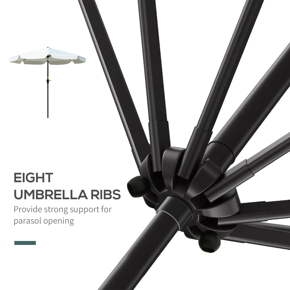 Outsunny 2.7m Patio Parasol Garden Umbrellas Outdoor Sun Shade Table Umbrella with Tilt, Crank, 8 Ribs, Ruffles, White