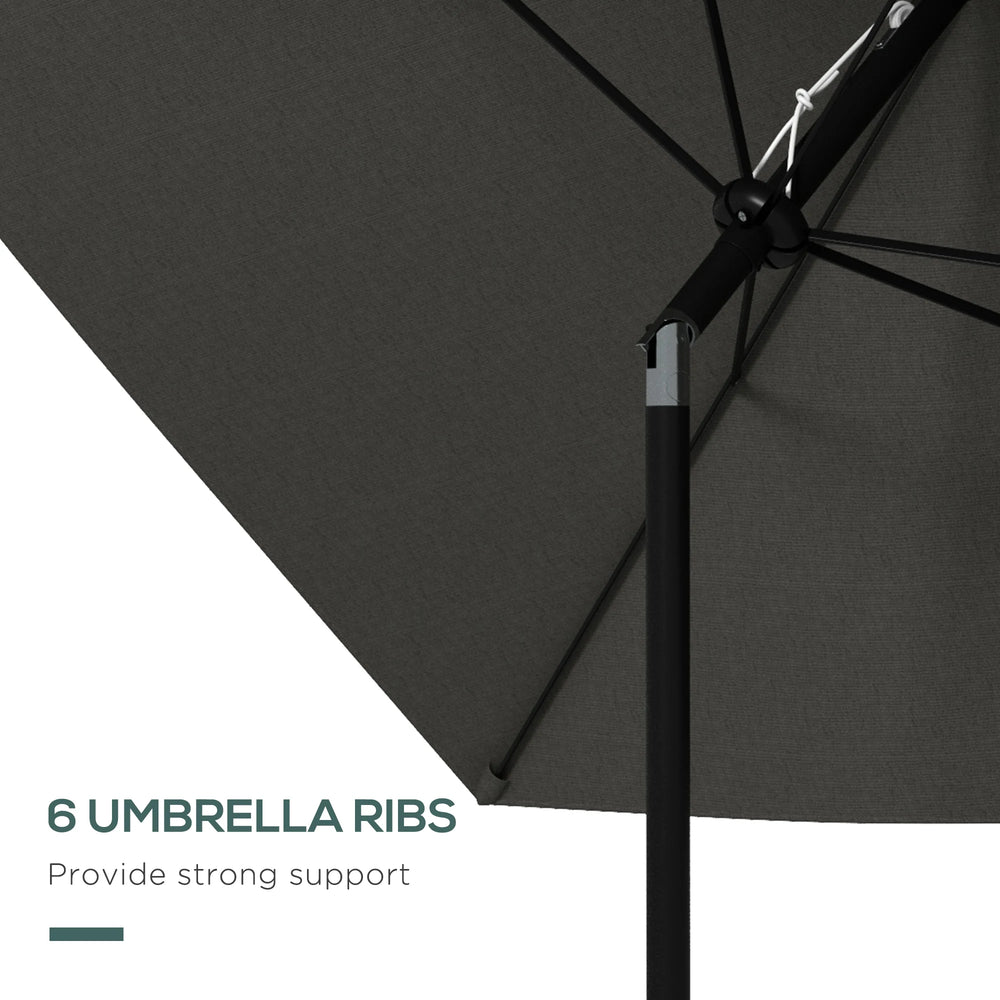 Outsunny 2 x 3(m) Garden Parasol Umbrella, Rectangular Outdoor Market Umbrella Sun Shade with Crank & Push Button Tilt, 6 Ribs, Aluminium Pole, Dark Grey