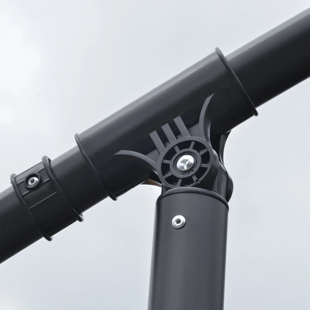 - Metal structure is strong, with eight ribs connecting to the canopy for extra support