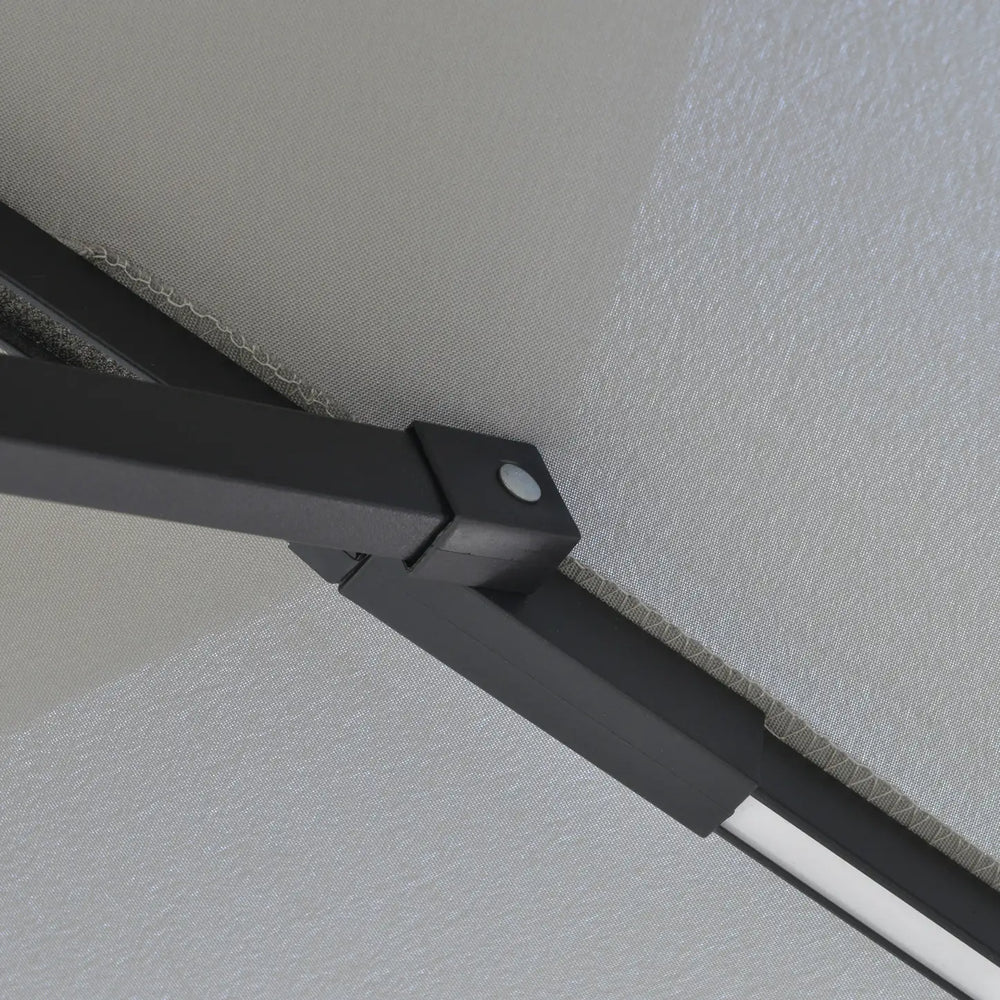 Outsunny 3(m) Cantilever Banana Parasol Hanging Umbrella with Double Roof, LED Solar lights, Crank, 8 Sturdy Ribs and Cross Base for Outdoor, Garden, Patio, Light Grey