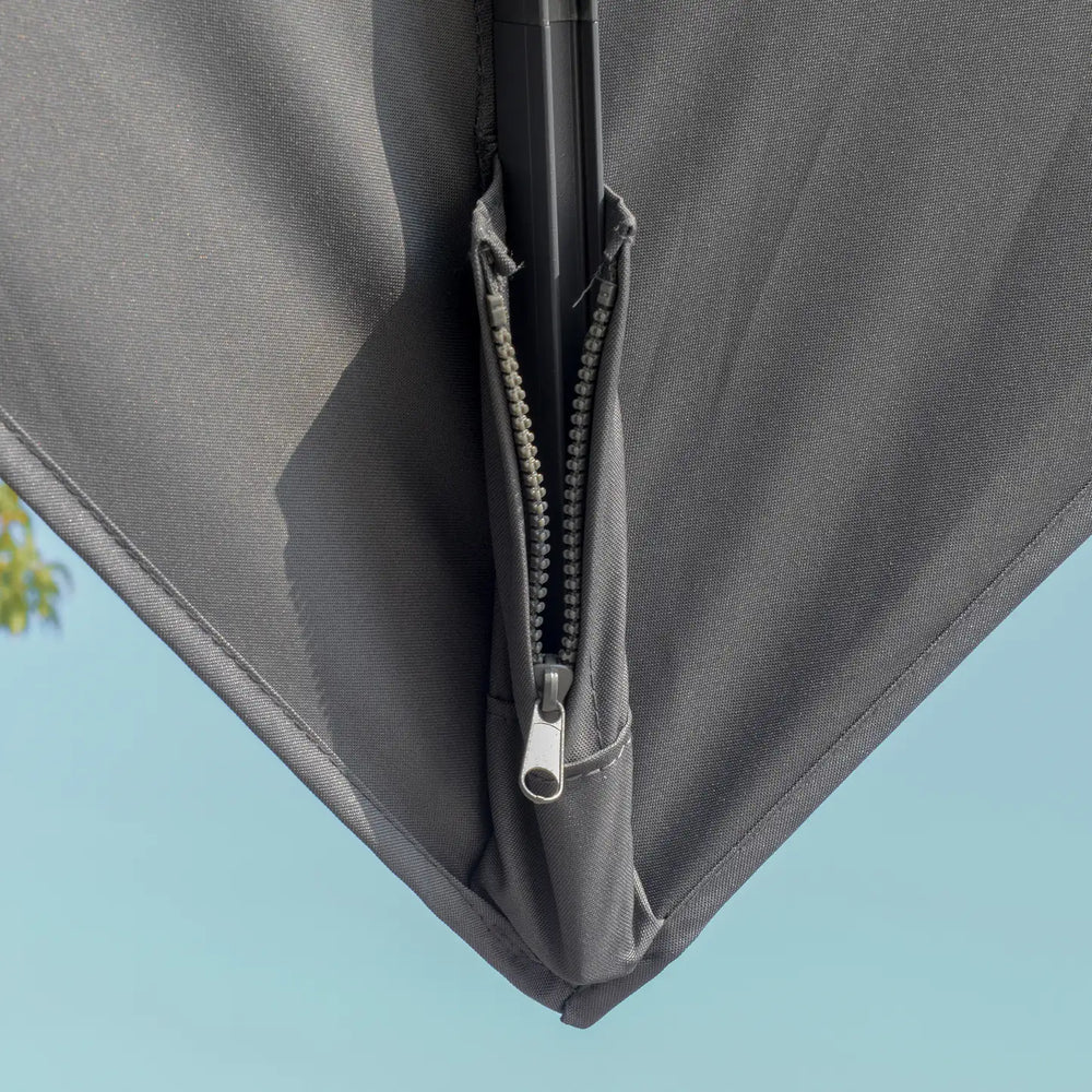 Enjoy shade in the day and beautiful illumination at night. Welcome this cantilever parasol with lights from Outsunny into your home to transform your garden memories. With LED lights scattered on the support ribs, controlled by a switch: you can radiate your outdoors at night. The large polyester canopy can be adjusted to 4 different angles and swivels 360, so it can provide shade at any angle. The banana umbrella is fitted with a crank handle to open and close the canopy easily.