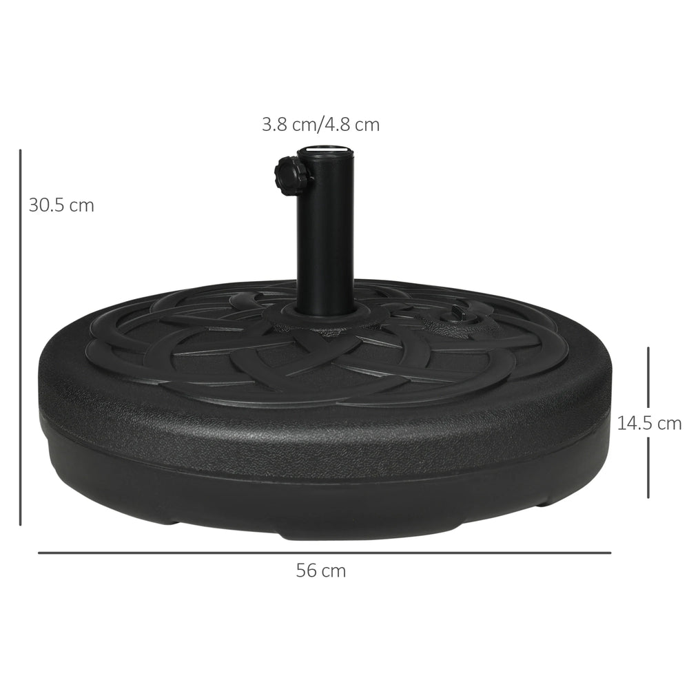 Ensure your parasol is always held firmly in place with this garden parasol base from Outsunny. Fill with water to weigh 25kg or sand for 35kg - or, mix both together for extra weight. The shell is made from plastic for a strong and durable structure. Features a filling port for easy fill and clean. Whether you wish to use this for the garden, patio or wherever else outdoors, this parasol will help you out.