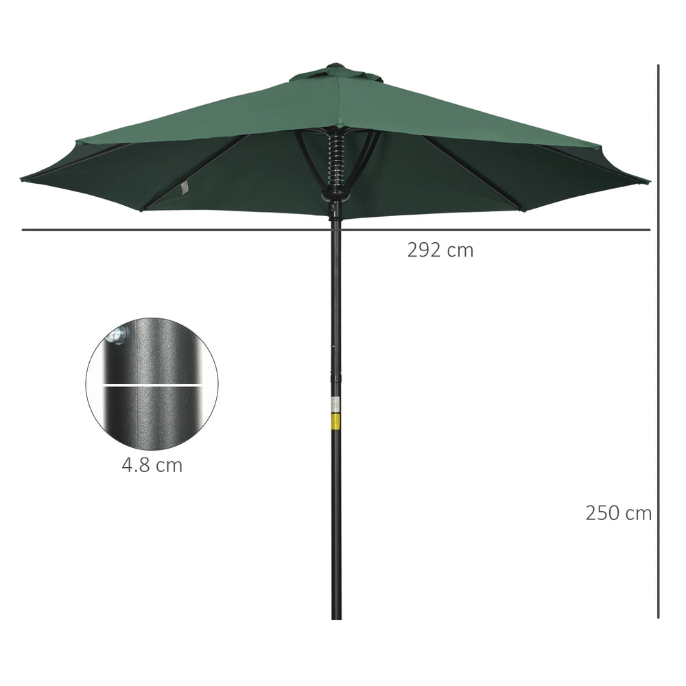 Outsunny Garden 3 m Parasol Umbrella, Outdoor Market Table Umbrella Sun Shade Canopy with 8 Ribs, Easy Push to Open, Green