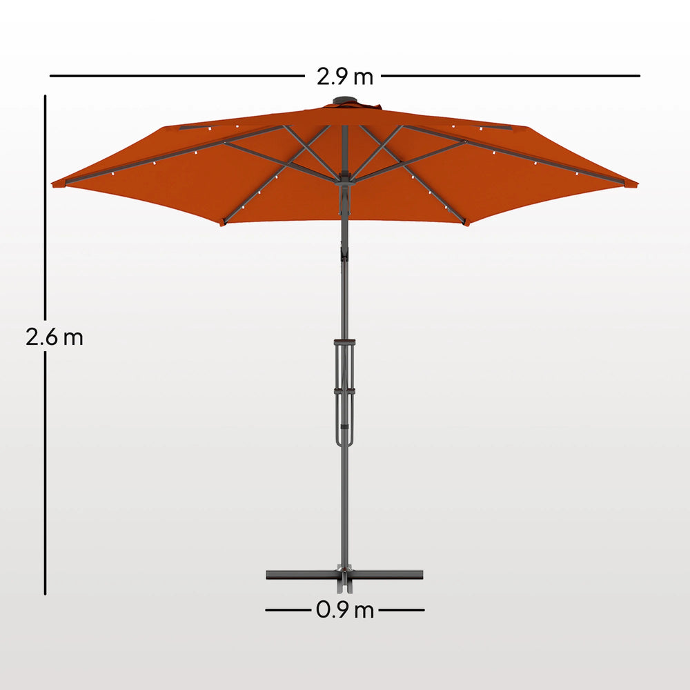 Outsunny 3(m) Solar LED Cantilever Parasol - Orange